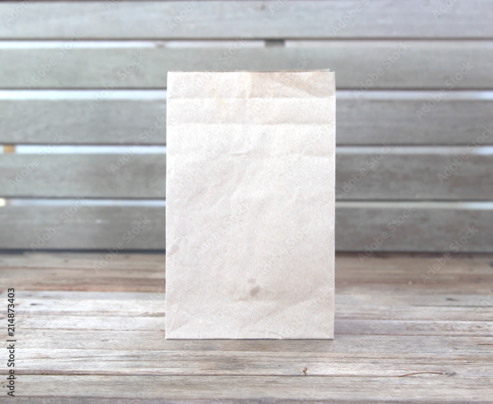 Brown Paper Bag On Old Wood Table Stock Photo Adobe Stock